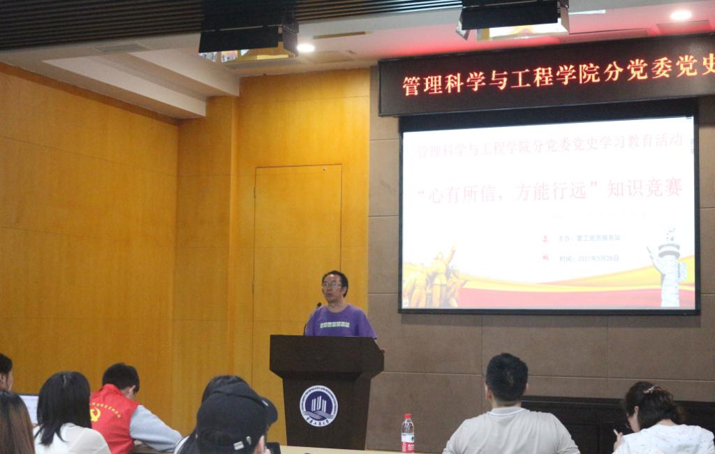 在培训课程后,管工学院入党积极分子还参加了学院党员服务站举办的党史知识竞赛。本次竞答活动集知识性、趣味性、互动性于一体,题目主要涵盖中国共产党百年奋斗历程、党的理论创新成果等,并将文字、图片、音频、视频等多种形式融入题目,创新丰富竞赛形式,让党史学习教育动起来、活起来。