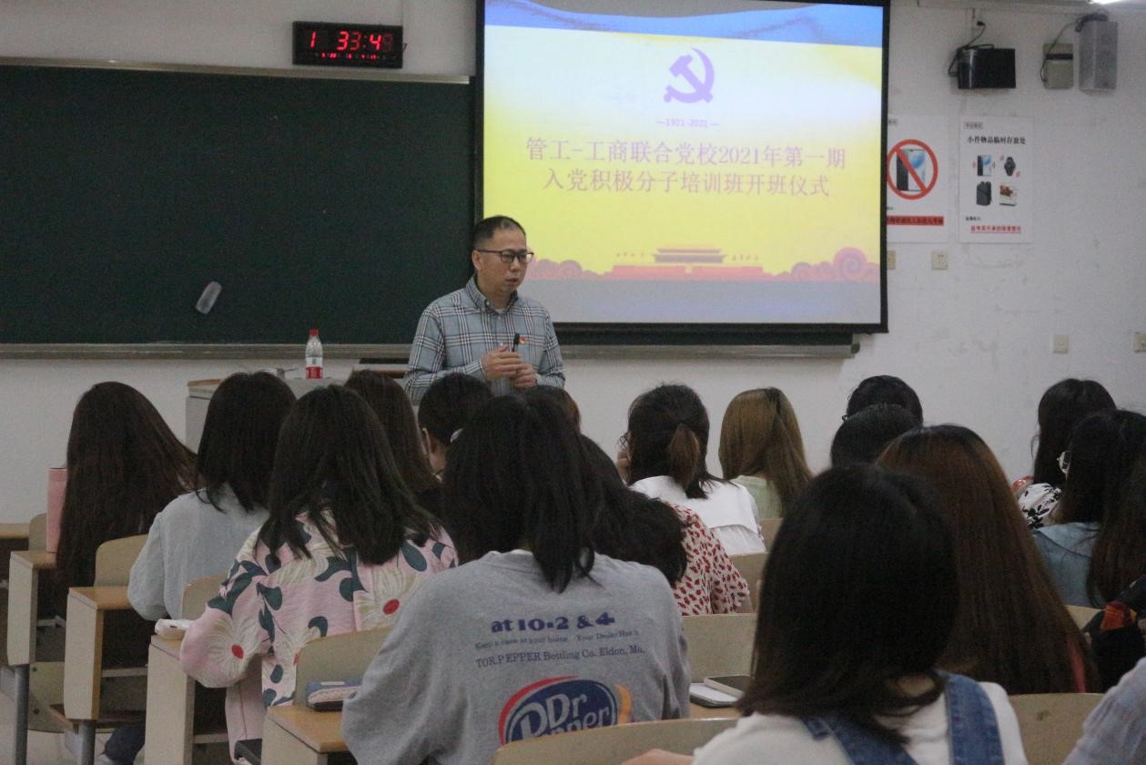 为了教育引导广大入党积极分子学习党的基本知识,了解党的基本路线和基本纲领,大力发扬红色传统、传承红色基因,以积极昂扬姿态迎接建党百年,2021年5月29日,由太阳成集团tyc539和工商管理学院联合党校举办的2021年第一期入党积极分子培训班在博智楼07205教室正式开班。太阳成集团tyc539党委统战部常务副部长陈松、太阳成集团tyc539分党委书记邓德敏、太阳成集团tyc539专职组织员叶海林参加了本次开班仪式并进行授课,80余名入党积极分子参加了此次培训。
