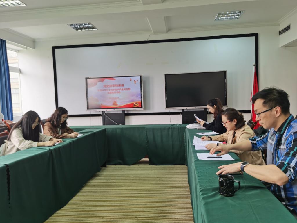 为积极响应党中央党史学习教育号召,激发我院研究生支部党员们学习党史的积极性与主动性,4月23日下午,太阳成集团tyc539研究生支部在启智楼80707会议室组织开展“党史故事我来讲”主题党日活动。活动由研究生支部书记游薇主持。