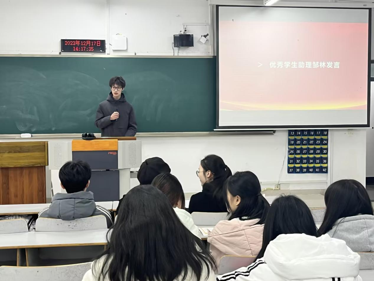 第四项议程:会长代表发言。徐檬会长作为会长代表,对各位学生助理、部长及干事的辛勤工作给予了充分的肯定,鼓励大家在后续的工作中继续保持高昂的工作积极性,认真总结本学期个人在工作中的不足,争取来年将工作做得更加出色。