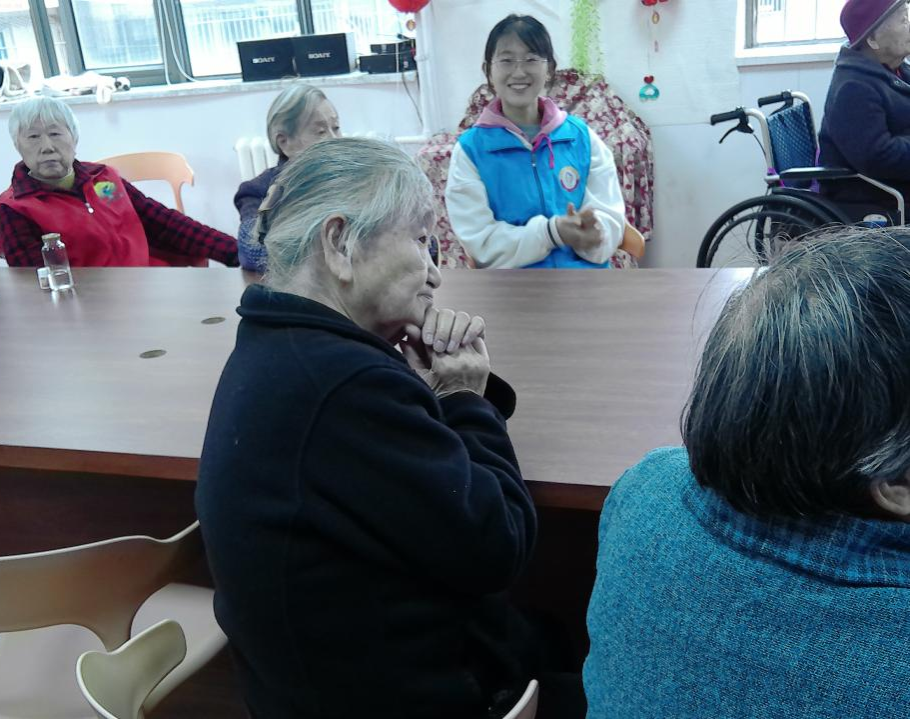 上午九时,一众志愿者到达了养老服务中心,一进门便感受到了老人们的热情。活动开始,老人们齐坐一堂,志愿者依偎在老人们身边,成为