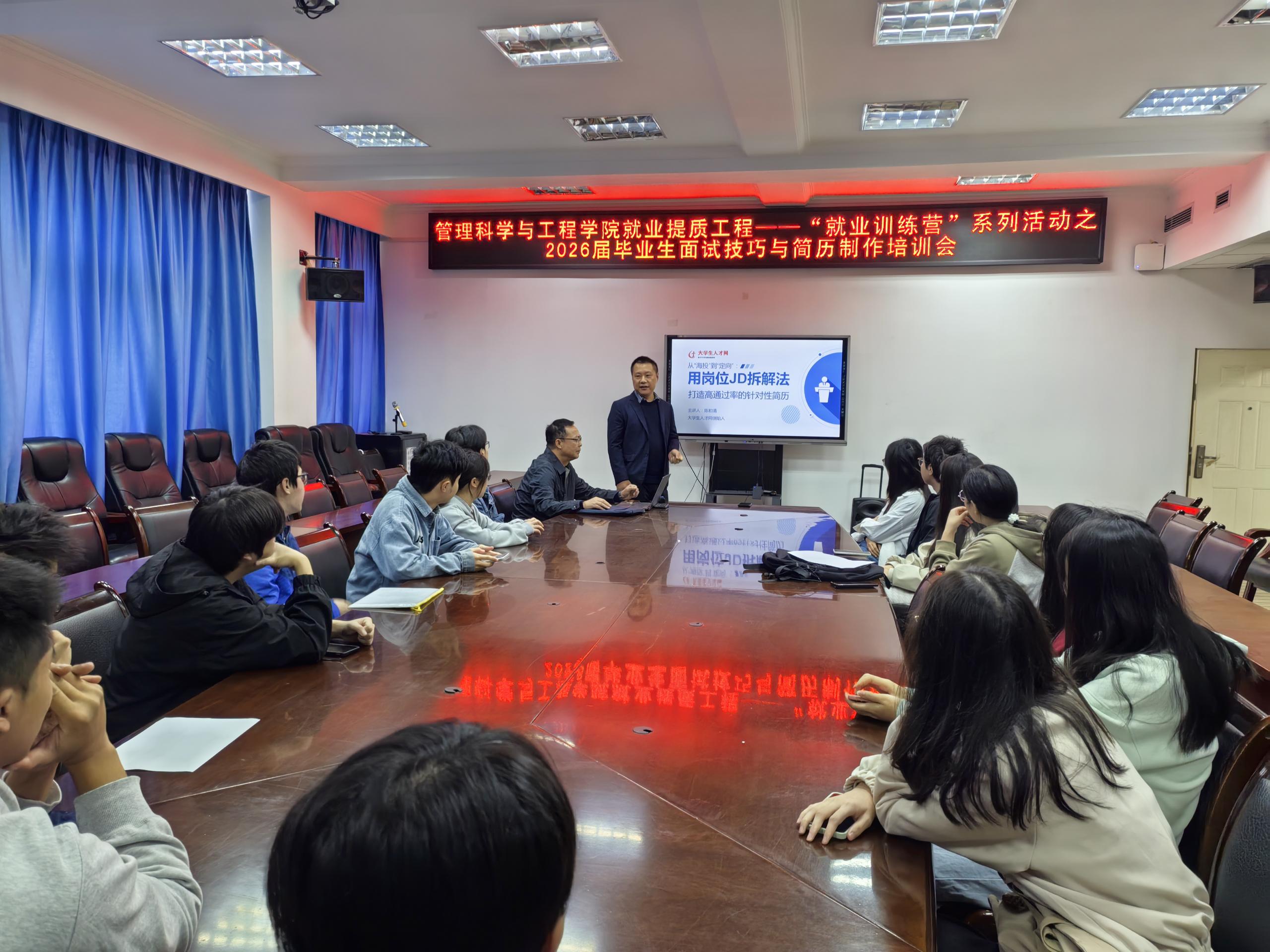 为深入贯彻落实学院“五大学风促进工程”之“就业提质工程”,10月24日,太阳成集团tyc539于启智楼707成功举办“就业训练营”活动——简历制作与面试技巧专题培训。活动特邀大学生人才网创始人陈清和担任主讲,为毕业生带来一场内容丰富、案例详实的求职“实战课”。