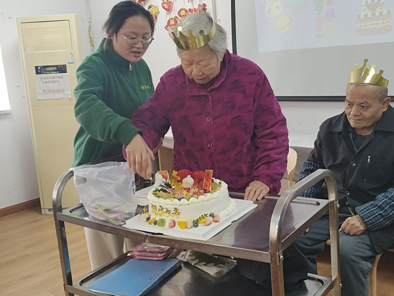 活动的温馨高潮,来自为两位寿星老人举办的集体生日会。工作人员推着点缀精美的生日蛋糕缓缓走来,全体人员共同唱响生日歌,真挚的祝福回荡在现场的每个角落。老人们闭上眼睛默默许愿,脸上洋溢着幸福的笑容。在志愿者的陪伴下,寿星切开蛋糕,与现场的老伙伴们分享甜蜜,每一口蛋糕都承载着满满的关爱与温暖。