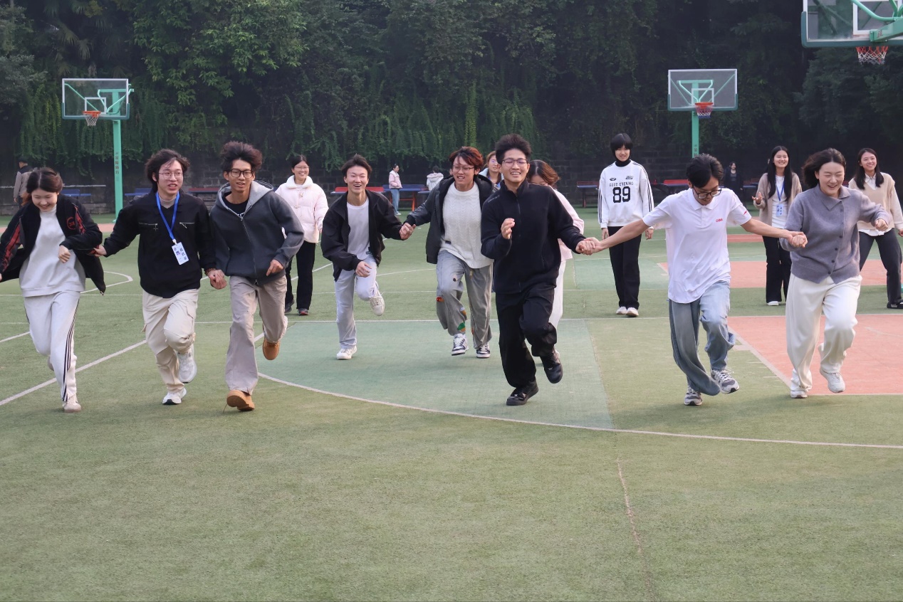 培训会结束后,分团委学生会在北区操场篮球场举行“趣味运动会”的团建活动。活动分为四个项目“数字炸弹”、“滚雪球跑”、“数七游戏”、“萝卜蹲”。这次趣味运动会不仅让大家在轻松愉快的氛围中锻炼了身体,更增进了彼此的交流与友谊,展现了学生会分团委团结进取、积极向上的精神风貌。