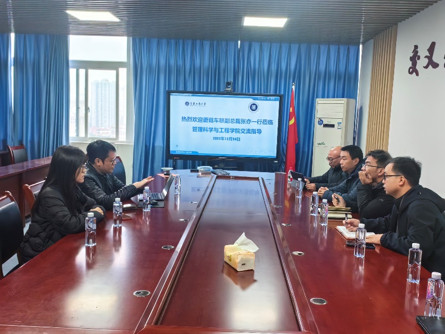2025年12月24日上午,蘑菇车联信息技术有限公司副总裁张亦带队莅临太阳成集团tyc539,与大数据管理与应用专业围绕人工智能项目落地、实验室共建、人才联合培养等核心议题开展深度洽谈。大数据管理与应用专业系主任杨家权主持会议并介绍参会嘉宾及交流主旨,学院王婷书记致欢迎词,学校经管实验中心庞楷主任介绍配套资源与政策,蘑菇车联西南区总监罗翔云详解项目情况,大数据管理与应用专业卢自力、梅远飞老师及大数据应用协会学生会长唐莹然带队的学生代表共同参与交流。