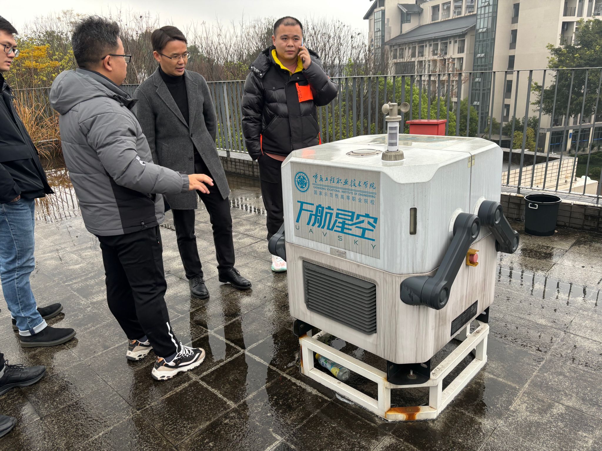 调研活动得到了重庆工程职业技术学院智能测绘产业学院、时空大数据创新中心负责人周金国老师的热情接待。周金国老师不仅详细介绍了学院实验室的设备配置和功能特色,还全面展示了无人机在地形地貌测绘、智慧工地建设、物流园区治安巡逻与巡视、港口与交通枢纽巡检等多个领域的应用成果。
