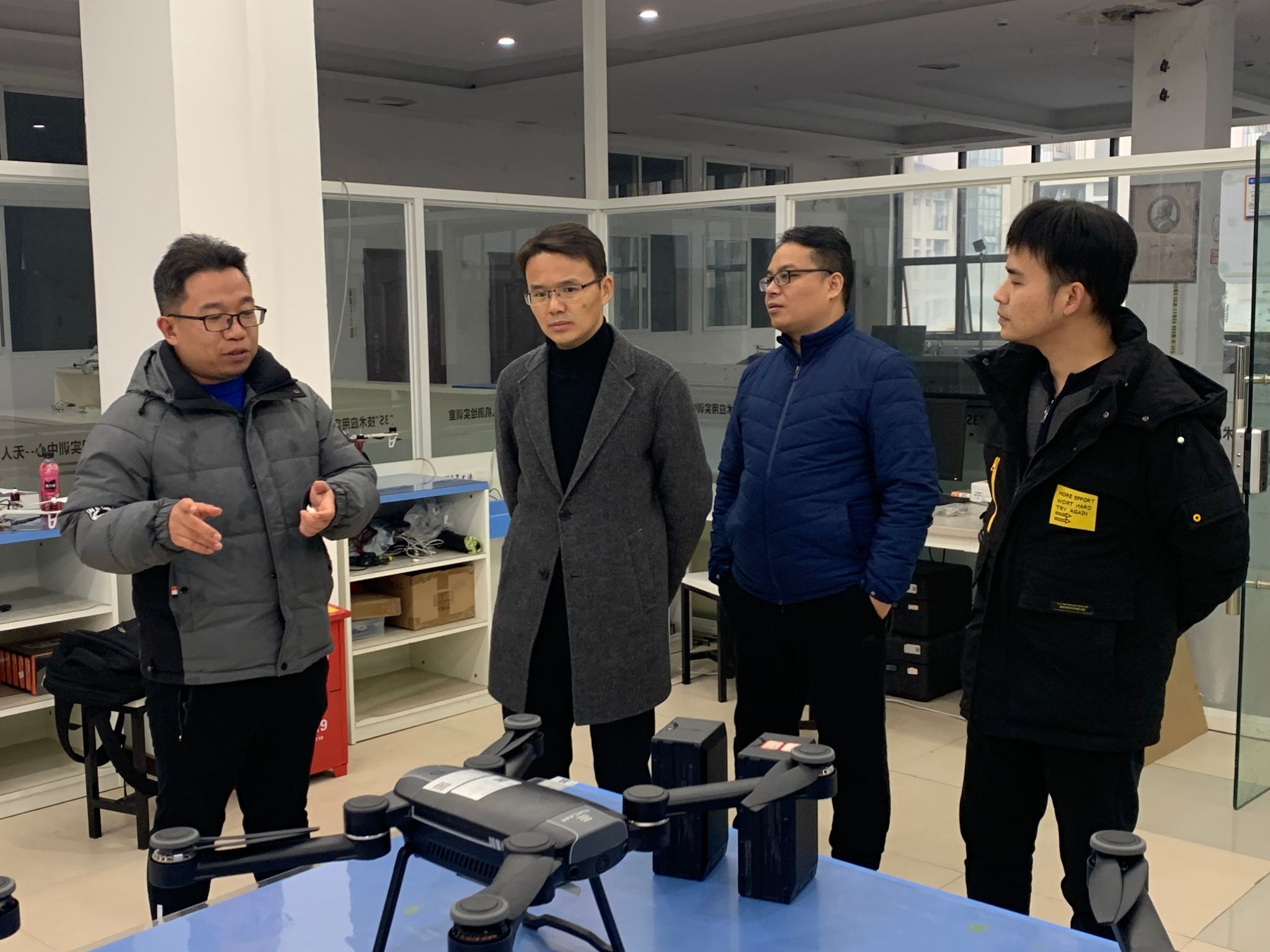 在调研过程中,梁桂保副院长一行深入了解了无人机技术的最新进展及其在实际产业中的应用情况。周金国老师通过现场演示和详细讲解,展示了无人机如何凭借其高效、灵活的特点,在复杂地形测绘中提供精确数据,如何在智慧工地建设中实现施工现场的实时监控和管理,以及如何在物流园区和港口等交通枢纽中执行治安巡逻和设施巡检任务,大大提升了工作效率和安全性。