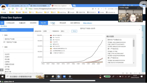 张晨峰博士主要从三部分讲解了中国人文社科空间数据分析平台应用案例,包括中国人文社科空间数据分析平台简介、空间数据与模式搜索、平台数据的Python案例分析。首先,张晨峰博士简单介绍了中国人文社科空间数据分析平台,它主要提供在线空间数据服务。该平台集成了政府统计、人口普查、经济普查以及地理环境等多种数据来源提供了全面覆盖省、市、县区、乡镇街道的丰富、独特、权威的组合信息,并具有在线空间数据查询分析的强大功能。随后,张晨峰博士演示了平台各个模块的使用步骤,选择特定模块后就可以得到相应的报表以及统计图。其中,张晨峰博士详细介绍了专题图模块,它包含新型冠状病毒每日疫情数据和2020人口普查短表,点击2020人口普查短表,就可以看到2020人口普查基本信息以及在地图上的分布。另外,张晨峰博士还对空间数据特性做了简单概括,指出与传统数据相比,空间数据包括地理特性,栅格数据模型与矢量数据模型是地理信息系统中空间数据组织的两种最基本的方式。最后,张晨峰博士介绍了Python的相关库,例如pandas库,并在此基础上利用Python进行教研案例分析与实践,指出该平台可以与其他数据结合,用于更多更有趣的与空间相关的一些研究,比如空间经济研究、空间金融学研究等。