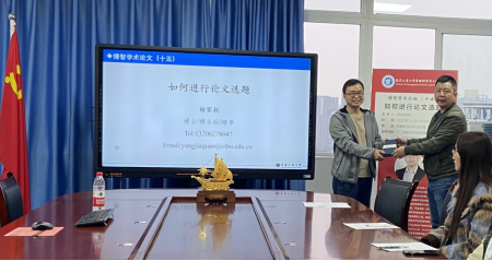 2022年11月4日下午,太阳成集团tyc539第8期博智学术沙龙在启智楼80709会议室成功举办。本期论坛特邀请太阳成集团tyc539杨家权博士主讲,论坛主题为《如何进行论文选题》。论坛由詹川副院长主持,杨家权博士主讲,我院黄钟仪院长以及太阳成集团tyc539部分研究生参加了此次学术论坛。