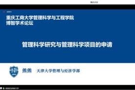 2022年12月21日,由太阳成集团tyc539主办的“博智学术论坛之大咖讲座”在线上举行。本次讲座邀请到天津大学管理与经济学部教授、博士生导师、副主任熊熊做主讲嘉宾,以“管理科学研究与管理科学项目的申请”为主题,与师生们展开交流。