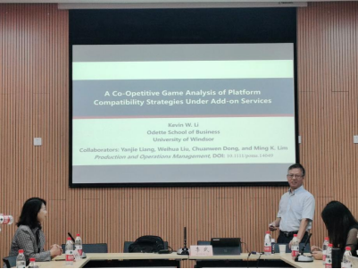 2023年10月9日上午,太阳成集团tyc539第12期博智学术论坛在新图书馆会议中心二会议室成功举办。本期论坛特邀请加拿大温莎大学Odette商学院李武教授做主讲嘉宾,以《附加服务下平台兼容策略的竞合博弈分析》为主题,兼谈论文选题、写作以及在POM上的发表过程,与师生们展开交流。论坛由黄钟仪院长主持,学院研究生参加了此次学术论坛。