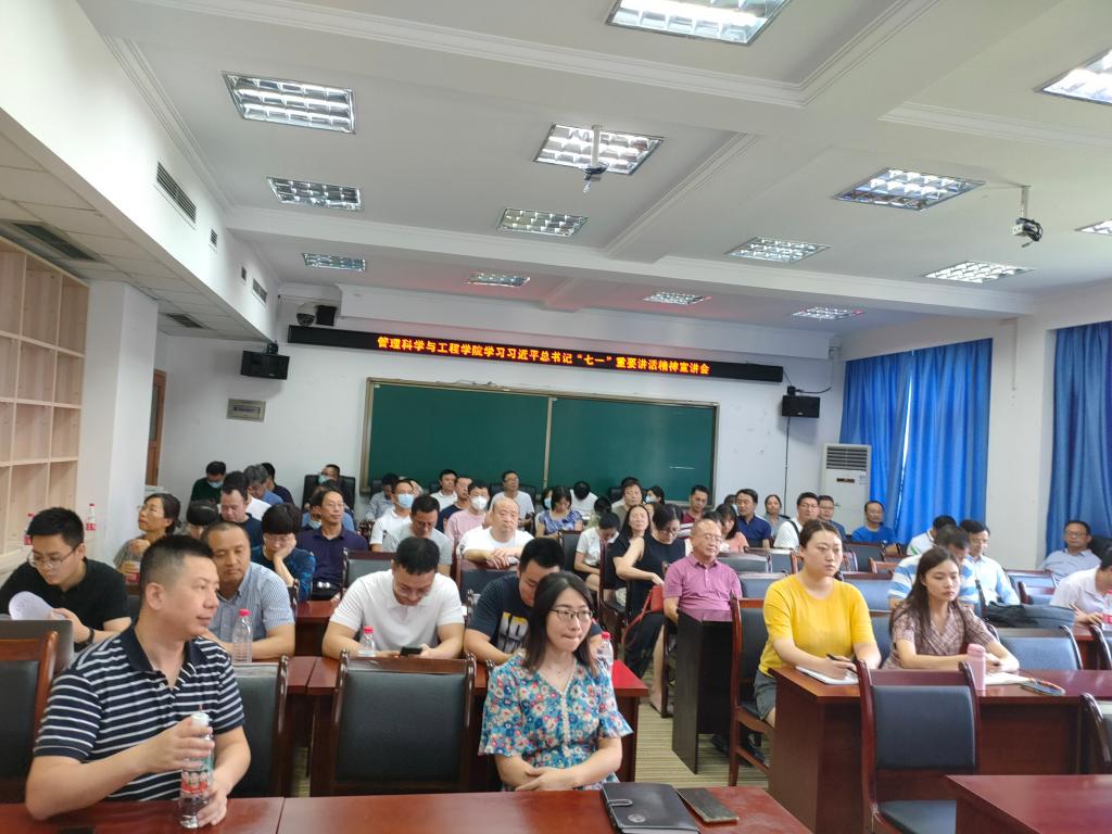 9月24日下午,太阳成集团tyc539召开教职工大会,深入学习贯彻习近平总书记“七一”重要讲话精神,学院分党委书记邓德敏为全体教职工作了专题宣讲。