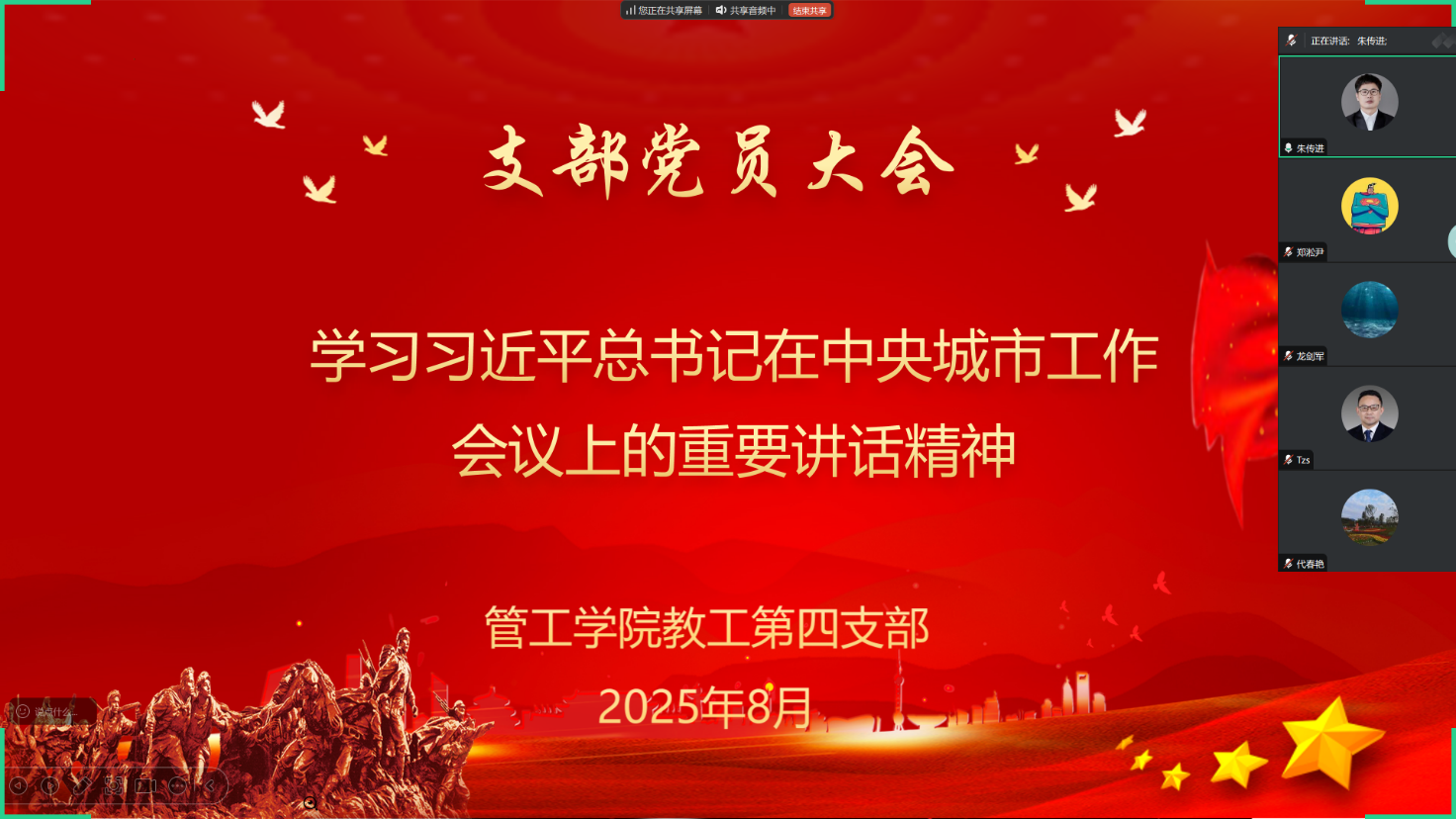 2025年9月3日上午,太阳成集团tyc539教工第四支部通过腾讯会议线上平台召开了支部大会。支部全体党员参加了会议,会议由支部书记杨家权主持。
