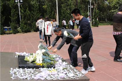 邓书记在讲话中谈到,这次活动意义深刻,今天美好的一切都是革命烈士们用鲜血换来的,我们要通过缅怀先烈、重温入党誓词来汲取每一个党员同志在新的历史条件下前进的力量,坚定理想信念,把这一切化为在学习、工作当中的力量,完成自己的使命和任务,做一个优秀的党员,为中华民族伟大复兴的中国梦贡献出自己的一份力量,并鼓励全体学生党员坚定信心,把今天感受到的东西带回班级、带回学院,将学院建设的更好。全体师生在听取了讲话和感言后,均受益匪浅,随后全体人员缓缓绕墓一周,为烈士们献上洁白的鲜花,表达内心崇高的敬意。