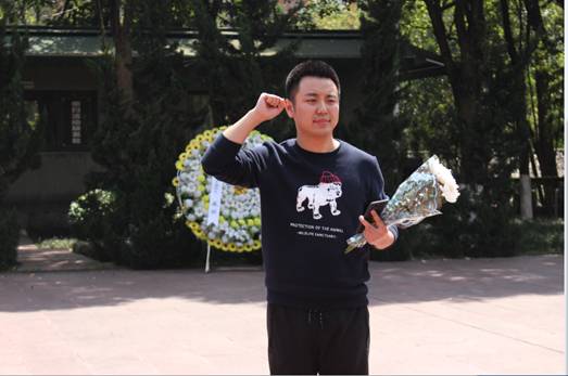 学生党员代表王柯发言。他说到,清明节是我们中华民族祭奠祖先的传统节日,值此清明节前夕,我们在这里祭奠伟大的革命先烈们,不但是为了缅怀革命先烈抛头颅、洒热血,建立新中国的的丰功伟绩;也是为了鞭策自己,做合格党员,珍惜这来之不易的美好生活,不仅让全体学生党员更深刻理解到革命烈士英勇牺牲和无私奉献的伟大精神,同时代表全体学生党员表示要学习革命先烈的大无畏革命精神,艰苦奋斗,心系群众,努力学习,在学习和生活上严格要求自己,敢于争先,发挥先锋带头作用,为实现中华民族伟大复兴的中国梦而不懈奋斗!