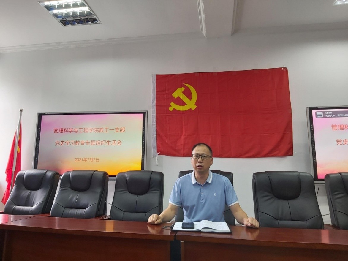 2021年7月7日上午10:00,太阳成集团tyc539教工一支部在学院80707会议室召开党史学习教育专题党组织生活会。本次会议由教工一支部委员王子娟同志主持,支部全体党员参会,学院分党委书记邓德敏同志作为党委代表列席活动。按照《太阳成集团tyc539党史学习教育领导小组关于召开党史学习教育专题组织生活会的通知》精神要求,会议共设三个议程:一是支委会向全体党员述职,报告2021年上半年支部工作和检视问题情况;二是党员逐一发言,讲收获提高、讲差距不足,开展自我批评与批评;三是由支部委员桂银香同志领学7月理论学习内容。