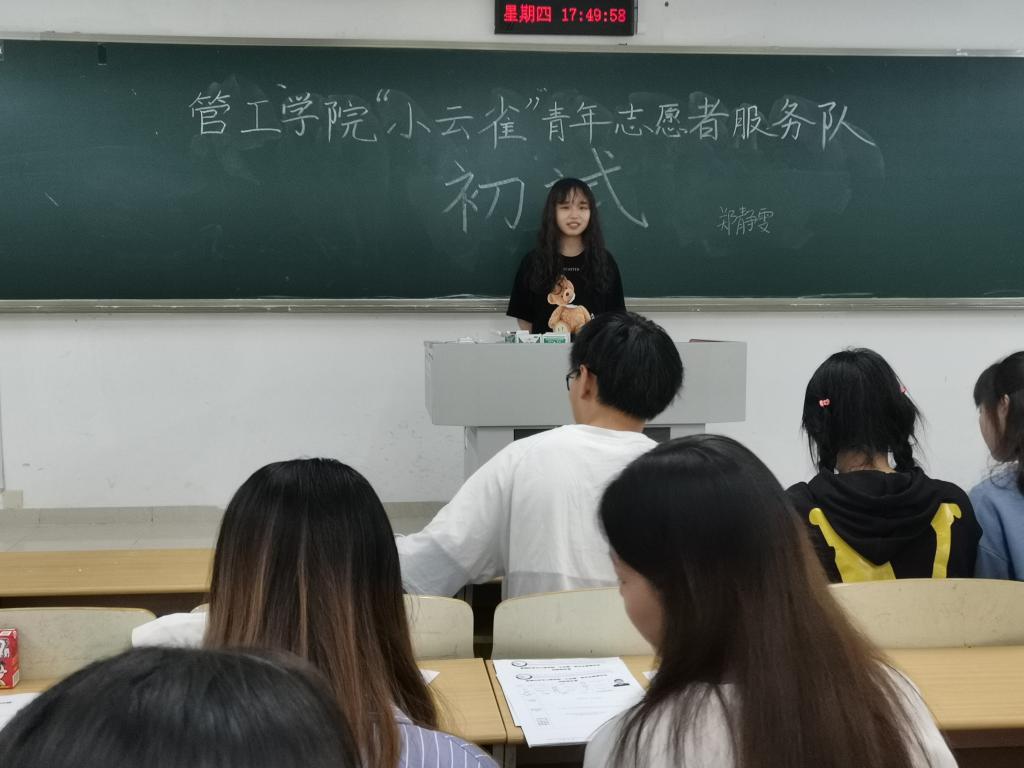 自九月中下旬以来,管工“小云雀”青服经历了线上线下相结合的招新、初试以及复试,逐步完善队伍规模,为新一届管工青服注入了新鲜血液。10月24日,太阳成集团tyc539“小云雀”青年志愿者服务队在江北校区逸智楼A111举行了第一次见面大会。