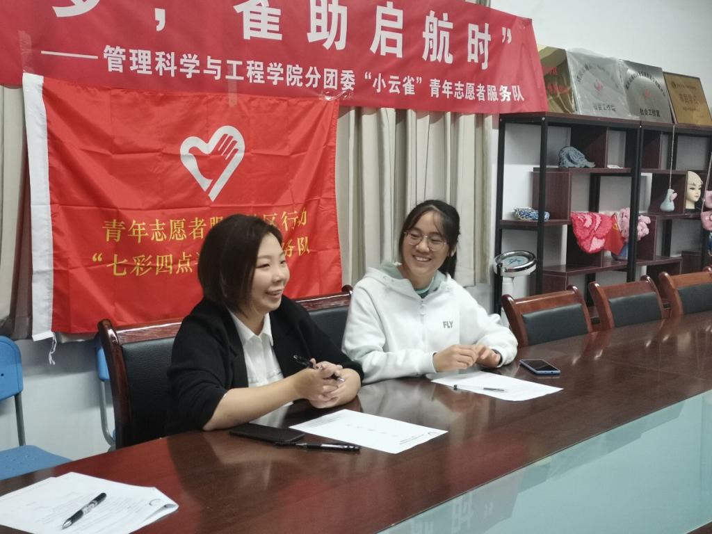 上午十点,“小云雀”会长团成员郭若楠、王小青,实践部部门负责人刘后燚、组织部门负责人黄小满参与了此次签署仪式。仪式上,大家对社区服务站党委书记张文婷对于此次活动的支持与理解表示衷心的感谢,并与其在活动的内容及意义进行了深切的交谈。