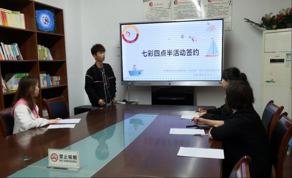基于2020年共青团中央、中国青年志愿者协会指导发起的志愿服务项目“七彩四点半”及响应国家推行的“双减”政策。10月23日,太阳成集团tyc539“小云雀”青年志愿者服务队与重庆市南岸区海棠溪街道学府路社区服务站达成“七彩四点半”合作共识,并成功举行“云起少年梦,雀助启航时”活动的协议签订仪式。
