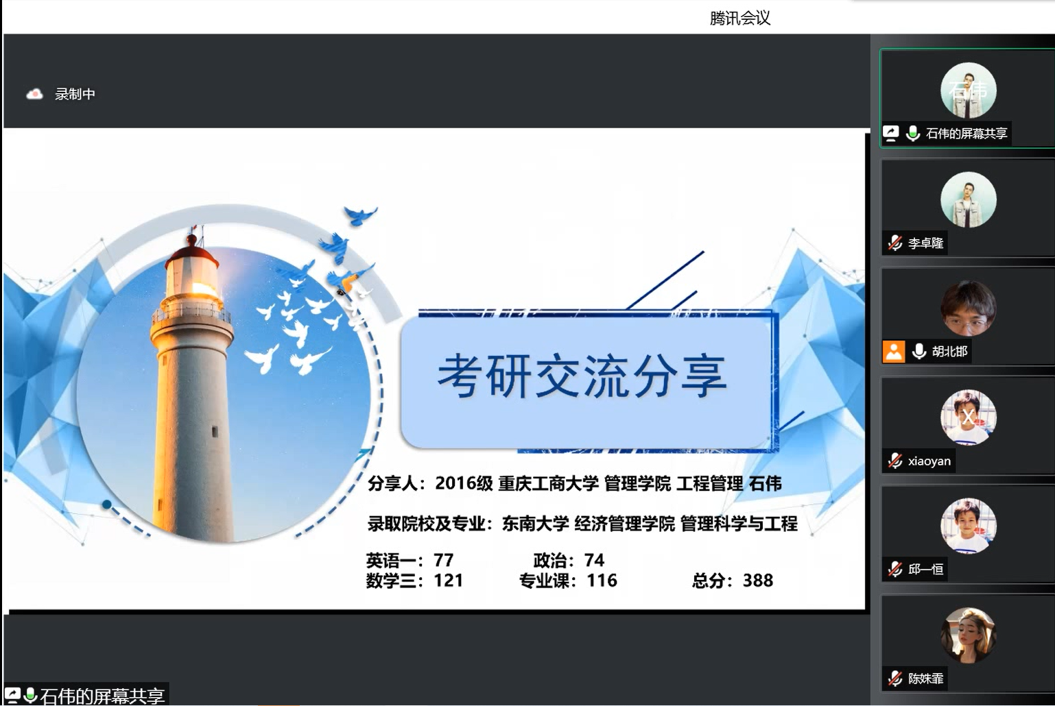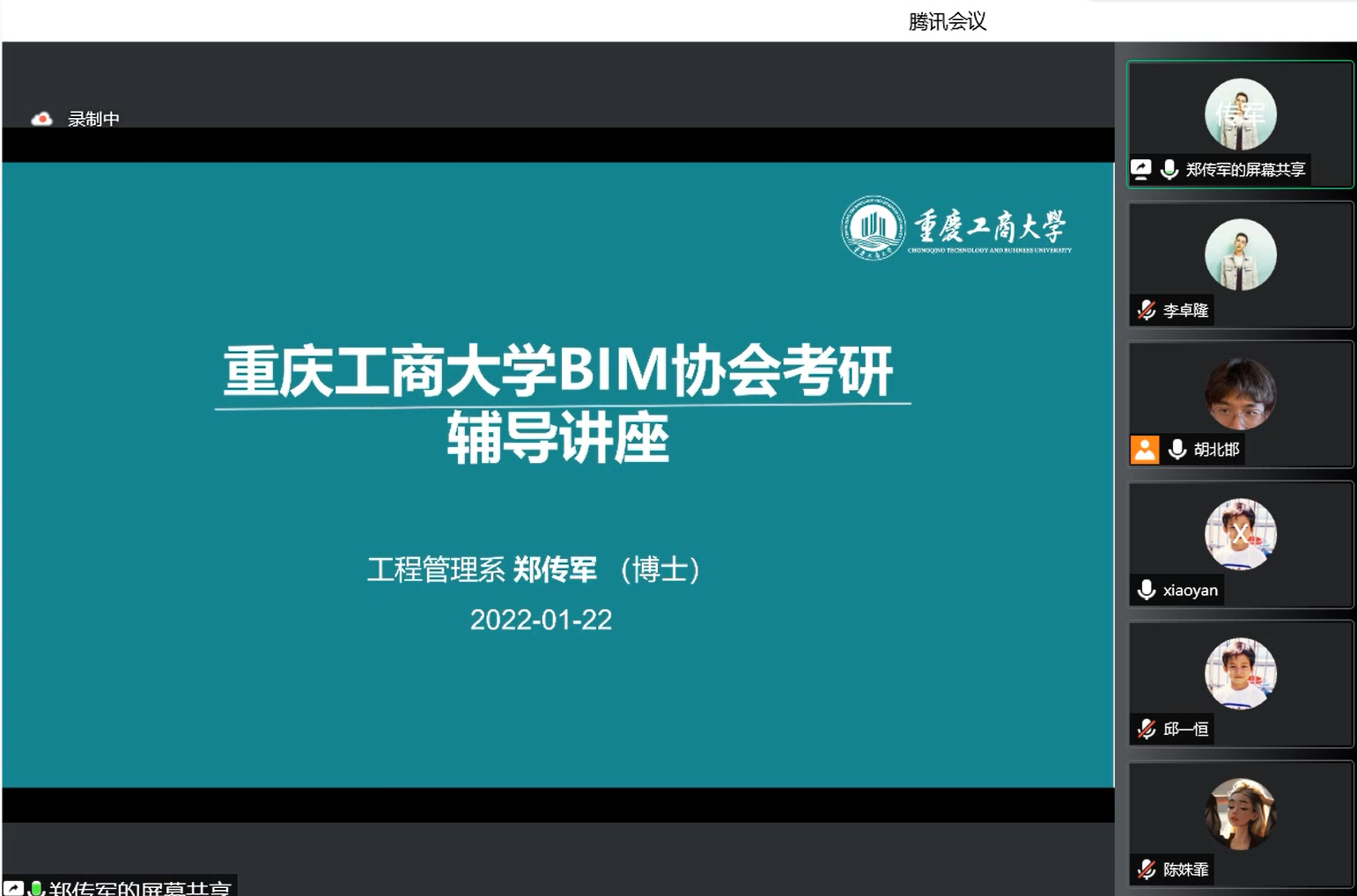 为了正确引导工程管理本科生考研并合理规划未来人生发展, 2022年2月12日,太阳成集团tyc539BIM协会于线上举办了主题为“研选之子,以梦为马”的考研辅导讲座。本次活动的参会嘉宾有工程管理系主任肖艳老师,副主任梁桂保老师,郑传军博士以及工程管理系石伟、唐仁凤、周迎澳三位校友。