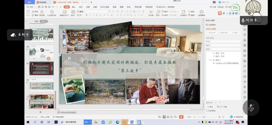 本次比赛共73支队伍参赛,最终共有22支队伍进入决赛答辩。各参赛队伍的答辩项目主题多样,涉及面广,如旅游、文化、国潮、乡村、非遗等。其中,许多小队聚焦于中国传统文化的开发和疫情影响下旅游产业的开发。各参赛队伍对他们的项目进行了个性化定制,使用线上与线下相结合的运营模式,为消费者创造了良好的体验。在参赛队伍演讲结束后,评委老师们对各参赛队伍提出了专业的点评和自己宝贵的建议。