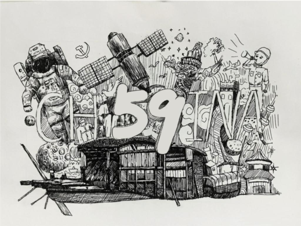 此外,21级动画一班的陈慧同学用素描线稿的形式呈现祖国辉煌的发展历程,将中国旗、长城、卫星、宇航员等元素融为一体,映出中国强国富民、民族复兴的百年梦想,寓意在党的领导下,中国用智慧与汗水完成着一个又一个的壮举。