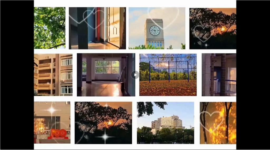 谭英雪同学所在团队的作品记录了晨光、日落、黄昏时刻的教学楼以及操场等影像,作品中的一幕幕正是莘莘学子在工商学习奋斗的缩影,也是工商人对母校的真情流露。