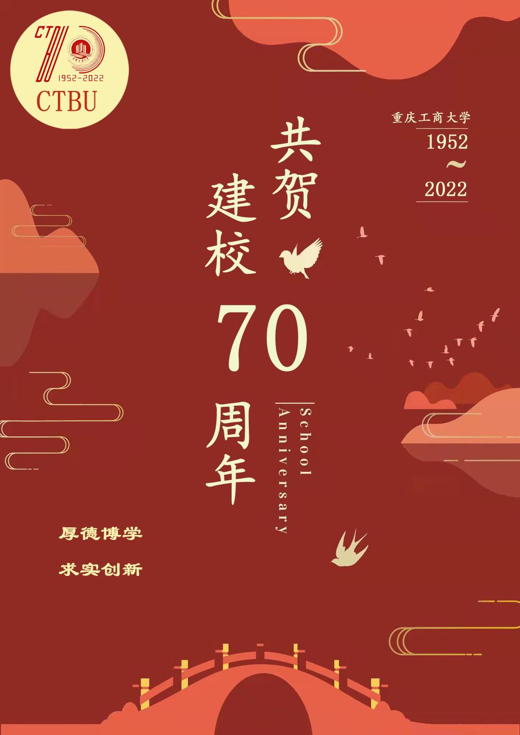 李楠同学的作品以喜庆的红色作为底图颜色,主图形“70“采用金色为主,金属感为辅,添加了神秘感与科技感,同时也与七十周年校庆图标相呼应,“0”中镶嵌有七十周年校庆图标与校门剪影。