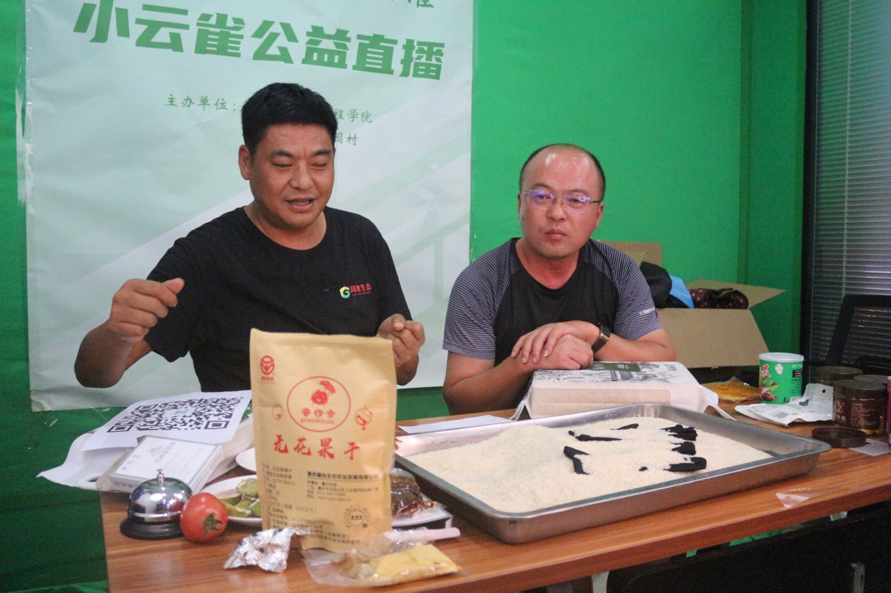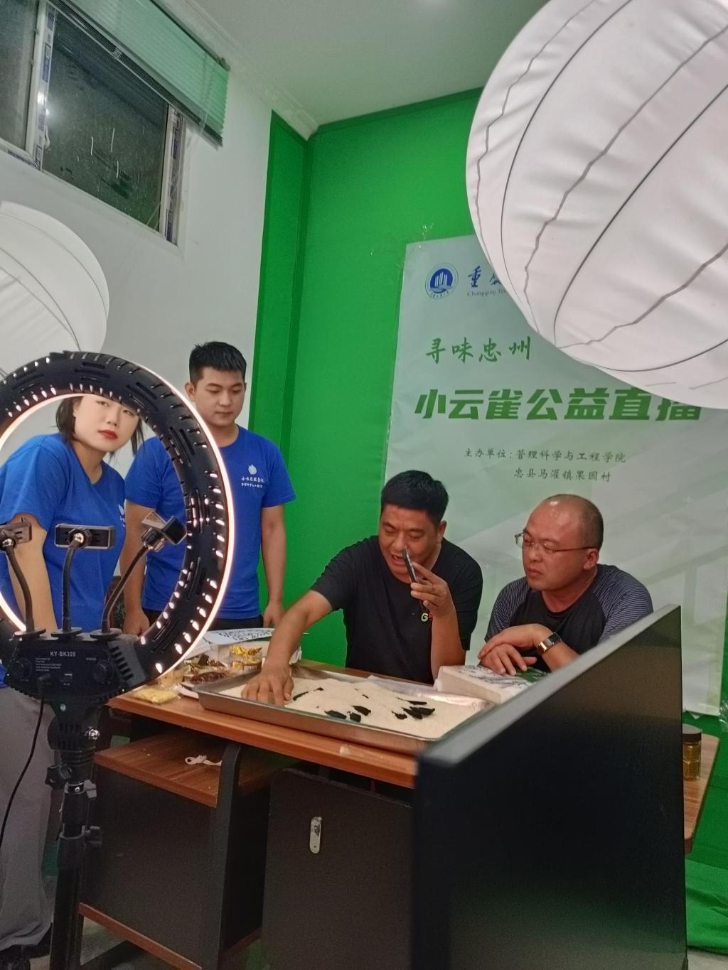 在田间地头的多次调研和直播方案的反复修改的基础上,7月7日,太阳成集团tyc539小云雀服务队的大学生们精心准备的“寻味忠州,嗨购马灌”公益直播在忠县马灌镇果园村高鹏农业直播间开播。