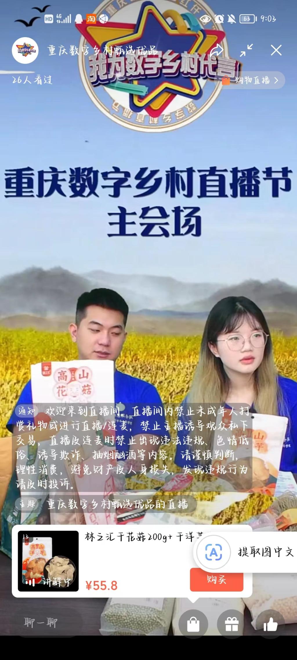本次直播节由重庆市委网信办、市农业农村委、市商务委、市乡村振兴局指导,中国移动重庆公司、重庆云上非物质文化遗产保护有限公司主办,设有“开门红日、数字乡村狂欢日、火锅狂欢日、重庆味道日、渝品乡味日”等多个主题日活动,线上展示、推介、销售2600余种来自重庆38个区县的优质农特产品和乡村文创产品。