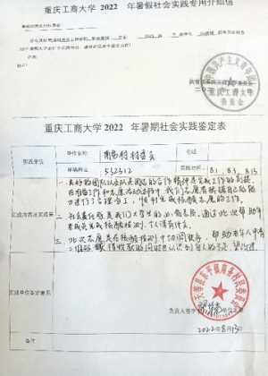 在学校开展的暑假社会实践活动中,马晓婷同学选择在当地社区做志愿者工作。她们不论天晴还是下雨,不曾退缩犹豫,用行动展现青年团员的担当,也用自己的实际行动,在基层防疫一线,践行着大学生的责任与担当,不仅锻炼了马晓婷同学与陌生人沟通的能力,培养了耐心,更是体会到了这样的工作的平凡和伟大。也让她明白了,不管现在有多迷茫,学的有多累,走的路有多艰辛,都决不能放弃希望、放弃努力。通过参加这次防疫防控宣传志愿服务的社会实践,让马晓婷同学觉得她们作为一名大学生更有义务投身到防疫防控工作当中,对社会来讲,这是对社会的一种责任与担当,体现大学生的奉献精神;对个人而言,既是一种自己能力的锻炼,又是能力的提升,要学会从实践学习,从学习中实践。也更好地践行了五进和贯彻“以德为行,以学为上”的育人理念。也深深的体会到了党和国家以及人民群众之间相互配合的重要性。