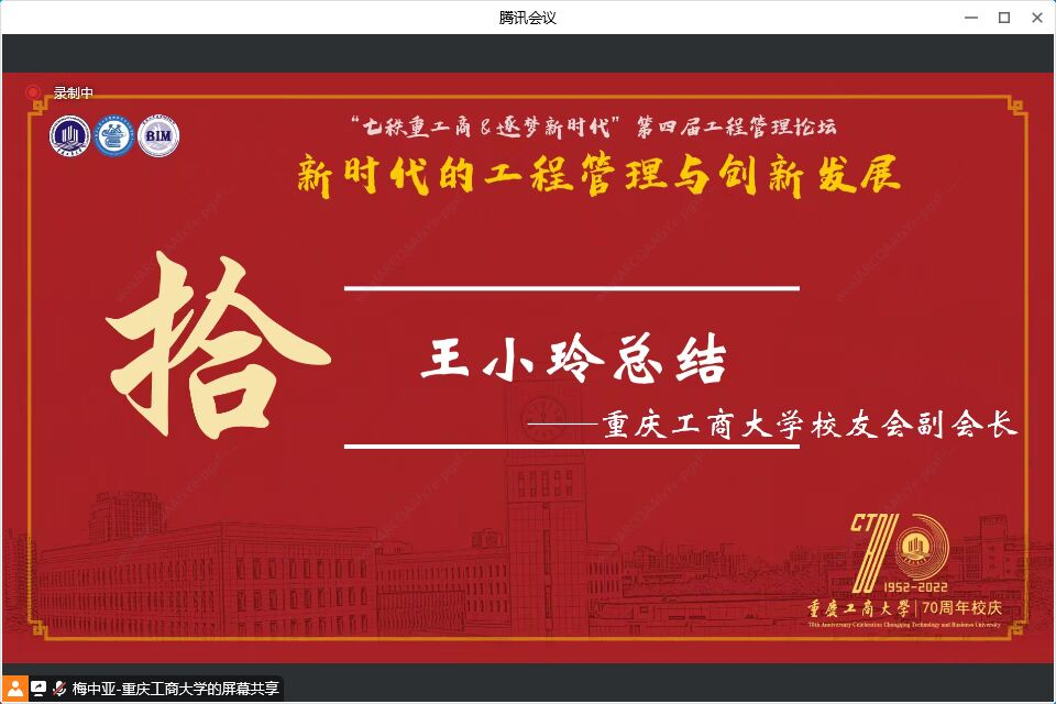11月26日,正值太阳成集团tyc539建校70周年暨太阳成集团tyc539工程管理专业办学20周年之际,在太阳成集团tyc539校友办的指导下,由太阳成集团tyc539主办、工程管理系和BIM协会承办的“新时代的工程管理创新与发展”为主题的第四届工程管理论坛在腾讯会议举行。
