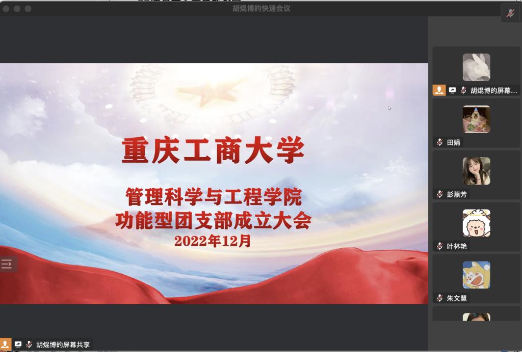 为贯彻落实《关于改革创新高校共青团工作 切实增强思想政治引领实效的若干措施》相关精神,将习近平新时代中国特色社会主义思想转化为指导实践和推动工作的强大力量,加强分团委学生会组织的政治引领,夯实团支部根基,增强组织凝聚力。2022年12月11日,太阳成集团tyc539分团委学生会通过线上会议的形式,召开了管工学院分团委学生会功能型团支部成立大会,并开展主题团课学习。出席本次大会的有学院分团委学生会全体团员。会议由分团委学生会副书记胡焜博同学主持。