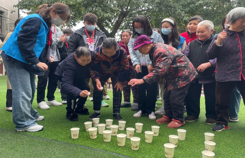首先,志愿者们在到达场地后便开始了有条不紊的准备活动,为此次活动顺利展开以及给老人们带来更好的服务做准备,并有序组织志愿者们陪伴老人到达活动场地。在下午两点整,主持人致开场词,活动正式开始。随后,先由志愿者们带来了精彩的表演,包括充满活力的开场舞及感情充沛的朗诵。其中,志愿者们的朗诵回忆了党的峥嵘岁月,同时展现了青年学习雷锋精神的良好风貌。紧接着,志愿者与老人们进行了“套圈夺宝”的游戏,积极邀请现场的老人们参加,促进老人们和志愿者相互了解,相互感染。志愿者们也为老人们献上了精心准备的礼品。夺宝游戏后,现场继续开展了志愿者跳健康操、合唱和老人们演唱歌曲等活动,气氛一度达到高潮。一些老人演唱了数首歌曲,将自己与党的感情和对往昔时光的怀念传递给现场的志愿者和在座老人们。志愿者们也为老人们带来了合唱,用真挚的歌声回应老人,年长与年轻、过去和未来、回忆与希望在交流中碰撞,在场地上空盘旋。