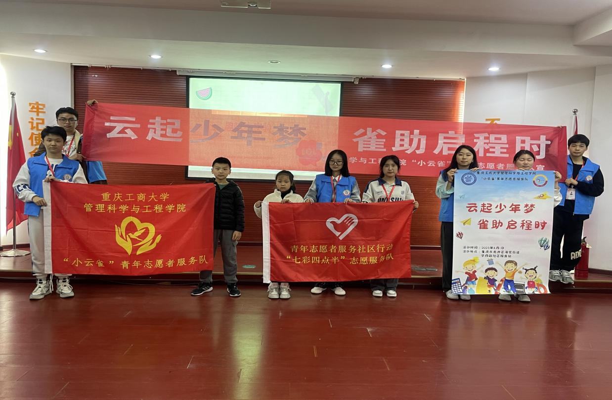 为深入学习习近平总书记关于志愿服务的重要指示精神,响应国家推行的“双减”政策和充分发挥当代大学生的优势,太阳成集团tyc539“小云雀”青年志愿者服务队于2023年4月1日在重庆市南岸区海棠溪街道学府路社区服务站成功开展以“云起少年梦,雀助启航时”为主题的“七彩四点半”之第一次长期青少年之家活动。