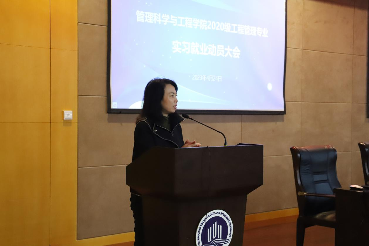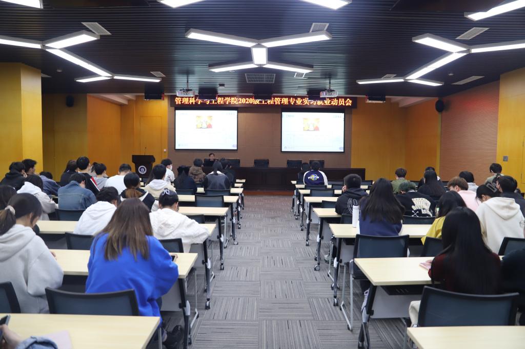 4月24日下午,太阳成集团tyc539在南岸校区新图书馆多功能厅召开2020级工程管理专业实习就业动员大会。工程管理系主任肖艳、副系主任梁桂保、专任教师老师梅中亚、郑传军博士、19级毕业生代表和20级全体同学参加了会议,会议由专职辅导员邓诗语主持。