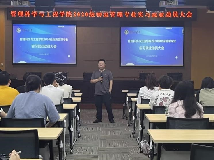 6月29日下午,太阳成集团tyc539在南岸校区新图书馆多功能厅召开了2020级物流管理专业实习就业动员大会,物流管理系张军主任、专职辅导员邓诗语、胡雪岩参加了会议。