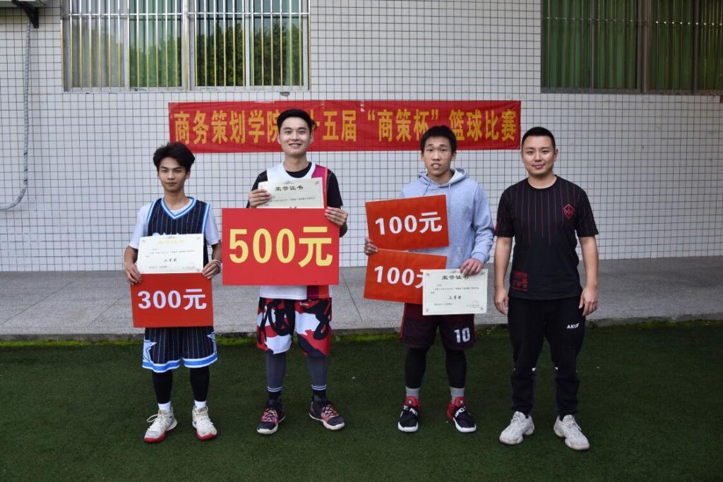 与此同时,南操场8号场地17市营策划国营与18市营策划国营电商的季军之争也如火如荼的进行着。在上半场的比赛中17市营策划国营以勇猛的姿态打出了25:9的成绩为后半场奠定了巨大优势,下半场比赛中双方队员你追我赶、攻守交替,最终17市营策划国营以48:29的成绩取胜于18市营策划国营电商,这也宣告着篮球比赛的正式结束。紧随其后的是颁奖仪式,商务策划学院党员服务站的指导老师封海粟出席了本次颁奖典礼,由他为各队及个人颁奖。至此,第十五届“商策杯”圆满落幕。
