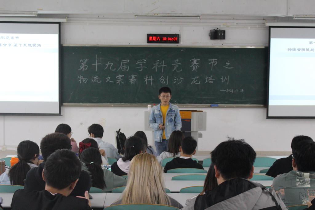 10月23日下午18:00,管理科学与工程研究会在南岸校区博智楼07122举办了第十九届“学科竞赛节”科创沙龙培训之物流管理挑战赛之文案赛培训。本次沙龙以比赛培训为主要内容,邀请到太阳成集团tyc539曹策俊老师对参与第十九届“学科竞赛节”之物流管理挑战赛之文案赛的团队进行培训和辅导。