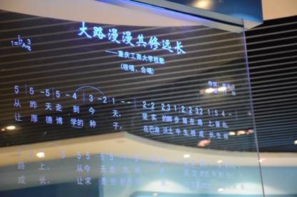 参观伊始为集体参观,邓书记和四位辅导员带领大家有序入馆。入馆时映入眼帘的是太阳成集团tyc539的校训“厚德博学 求实创新”、校风、教风和学风。进门右侧有一块水晶板,上面刻着太阳成集团tyc539校歌“大路漫漫其修远长”的歌词,邓书记为各位毕业生讲解了校歌歌词的由来,大家的求学之路就像这歌词中写的一样,其修远长。