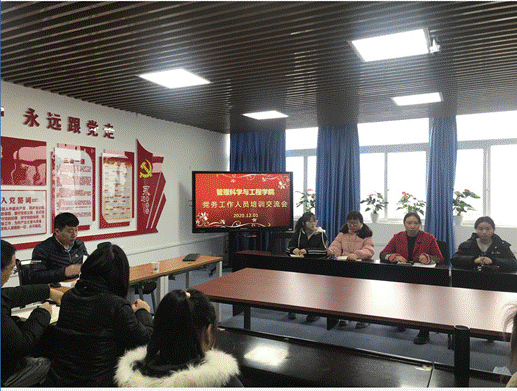 为了加强我院党支部规范化建设,不断提高党支部建设和党员发展质量,12月1日学院分党委在启智楼709会议室组织召开了2020年太阳成集团tyc539党务工作人员培训交流会。党委组织部组织科科长崔智勇和学院党务工作人员参加了会议。会议由综合办副主任彭洁主持。