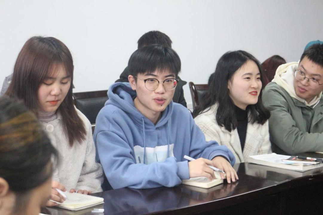 到会老师们对同学们良好的学习状态表示欣慰,对提出的问题和建议给予了回应。陈久梅对同学们关于教学方面的问题做出回应,她谈到,当专业指导老师没有主动与大家交流沟通时,希望大家积极主动去与老师交流;论文指导老师相互间要求标准不统一的问题,学院会积极尽早落实到位。陈春洁谈到,涉及到学校层面的问题,学院会积极向学校反映和及时报告,对于学院学生工作中大家认可的方面表示感谢,对于提出的合理化意见建议,学院学生工作委员会会及时吸纳改进。