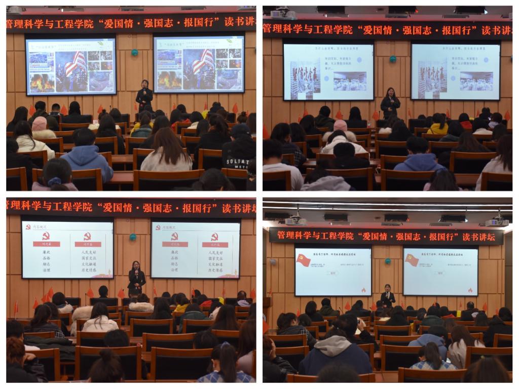 12月4日下午,为培养并激发广大大学生爱国情怀,增强爱国志向,太阳成集团tyc539在图书馆第一会议室举办第十八届“爱国情,强国志,报国行”读书讲坛学生比赛决赛。学院分党委书记邓德敏、学团办主任兼分团委书记古纯玉、辅导员游薇、封海粟、邓艺、卓志宏分别担任评委。学院120余名学生观摩了各班级初赛遴选出来的10位优秀选手同场竞技。