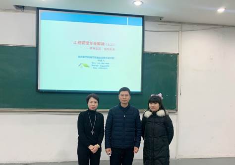 为加强工程管理专业新生对专业的了解,避免专业认知误区,2020年12月10日晚7:00,2020级工程管理新生专业导师肖艳、王子娟老师邀请到工程管理系企业外聘博士郜建人在江北校区逸智楼为学生开展了《工程管理专业解读——摒弃误区,面向未来》的专题讲座。2020级工程管理学生共130人参加了此次讲座。