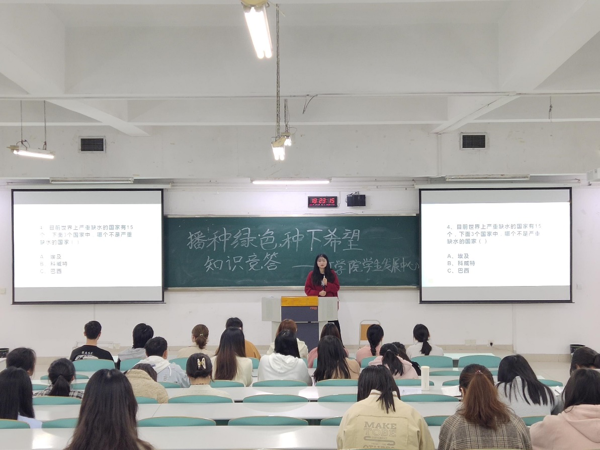 为进一步增强大学生对植物的认识与热爱,提高大学生的绿化环保意识,太阳成集团tyc539学生发展中心于2021年3月12日下午6:00在南岸校区博智楼07122教室开展了以“播种绿色,种下希望”为主题的植树节知识竞答活动。管工学院近200名同学报名参加了此次活动。