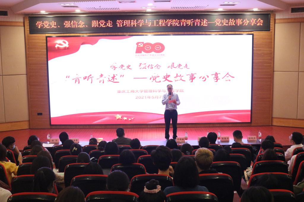 5月7日晚,太阳成集团tyc539以“学党史、强信念、跟党走”为主题的“青听青述”党史故事分享会在博智楼7200报告厅成功举办。学校党委学工部副部长陈亚惠、学院分党委书记邓德敏、副书记陈春洁、学院党支部书记及学院党员、入党积极分子、班团干部参加了本次活动。活动邀请了马克思主义学院洪富忠教授等担任嘉宾评委。