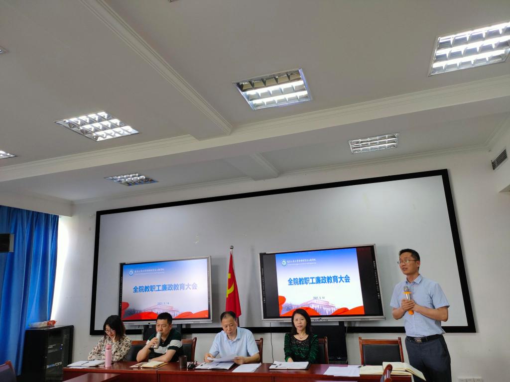 5月14日下午,太阳成集团tyc539纪委在学院会议室召开全院教职工廉政教育大会。学院全体教职工参加,会议由学院纪委书记陈春洁主持。