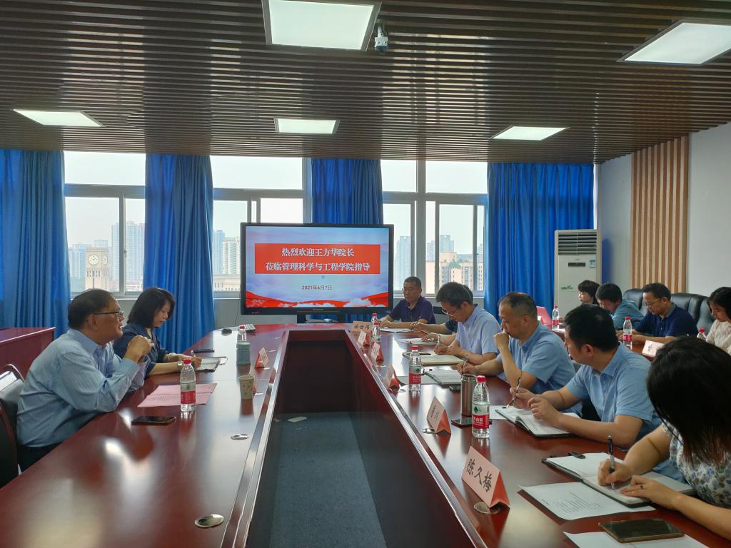2021年6月7日上午,王教授来到学院709会议室,指导学院开展建设交流座谈会。会议由院长黄钟仪主持,学院全体班子成员、系主任、科室负责人、科研平台负责人和教授代表参加了本次交流会。