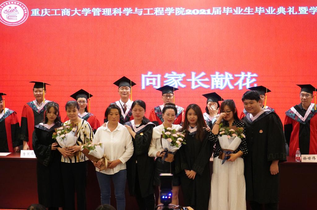 今日学业有成,离不开老师的谆谆教诲,离不开父母的辛勤付出。临别之际,学院毕业生为教师代表以及家长献上了“感恩”鲜花,表达了全体毕业生对老师和家长的感谢。一束束鲜花承载着学生对老师和家长最真挚的爱,师生之情永存,亲情之爱永远。
