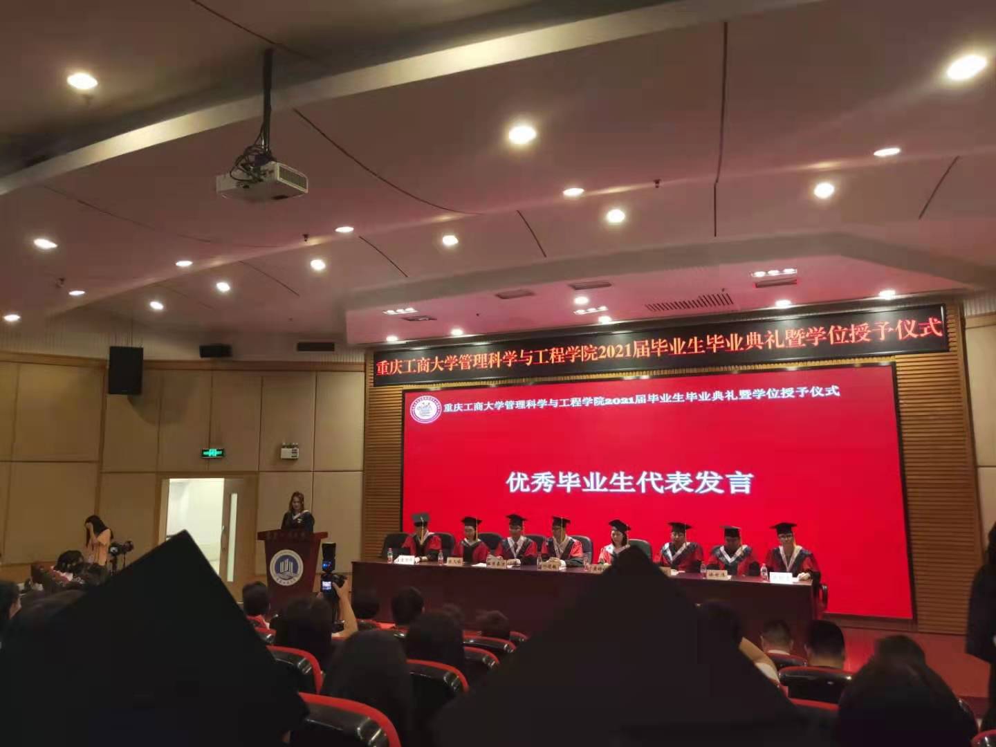 恰同学少年,风华正茂。在本次2021届毕业生中,涌现出一大批优秀学子。2017级本科毕业生薛佳慧作为优秀毕业生代表上台发言,她说身为管工人,未来要继续以“立大志、成大才、担大任、明大德”共勉。“感恩伟大时代、感恩伟大祖国、感恩学校与老师。”正值中国共产党百年华诞,教师代表工程管理系主任肖艳老师寄语学生“要常怀爱国之情,厚植强国之志,实践报国之行,要牢记‘厚德博学,求是创新’的重工商校训,努力成长为胸怀天下、自强不息的卓越人”。
